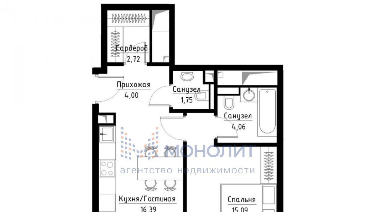 1-к кв. Москва Волгоградский просп., 32/3к4 (44.0 м²)