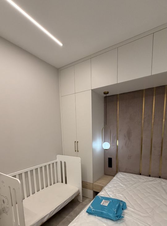 В спальне также есть телевизор Sony, очень удобный столик для макияжа, а также большое количество хранения. Сейчас в квартире стоит детская кроватка дорогого Бренда Micuna (бортик к ней устанавливается за минуту. кроватка от 0 до 4 лет), также можем оставить башню помощника, если вы будете жить с маленьким ребёнком.