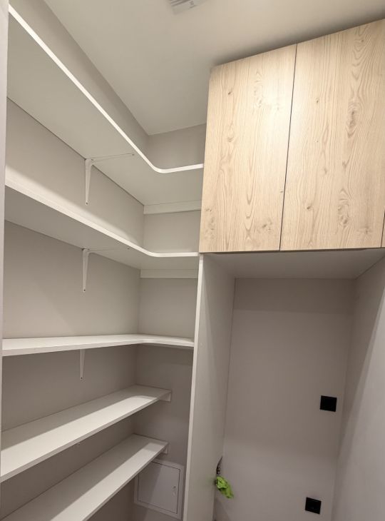 Также отдельная комната-постирочная. Очень удобно хранить там пылесос, предметы для уборки, гладильную доску и постиранное белье. В ней также организовано очень много хранения и завтра будет установлена стиральная машина с функцией сушки, фото добавлю.