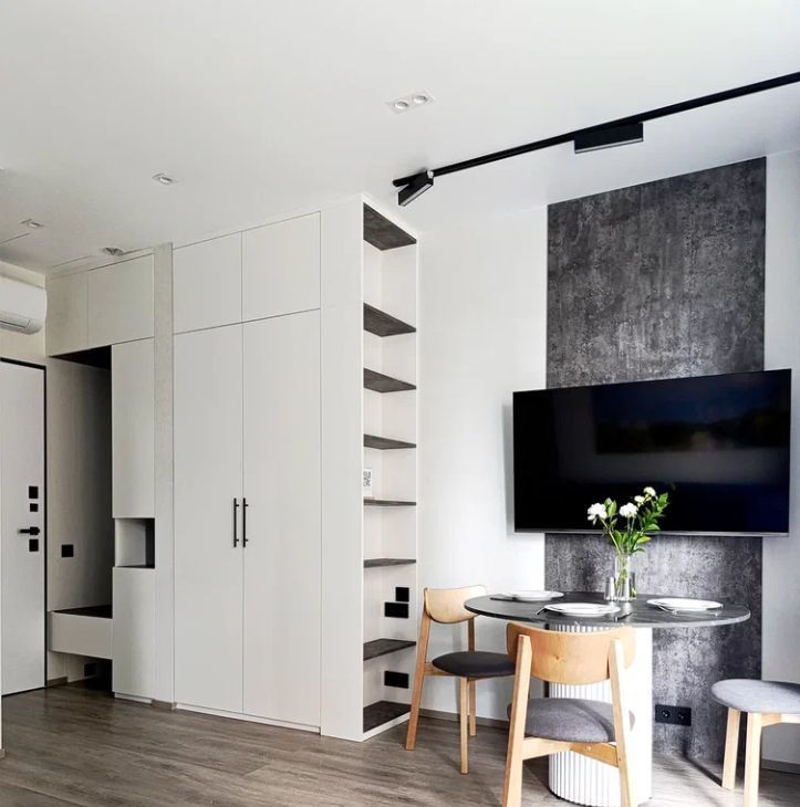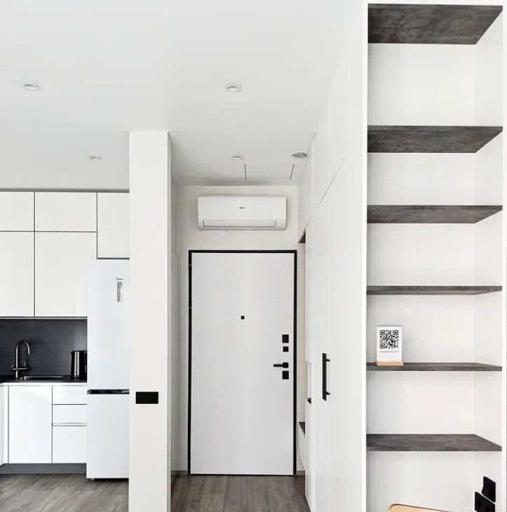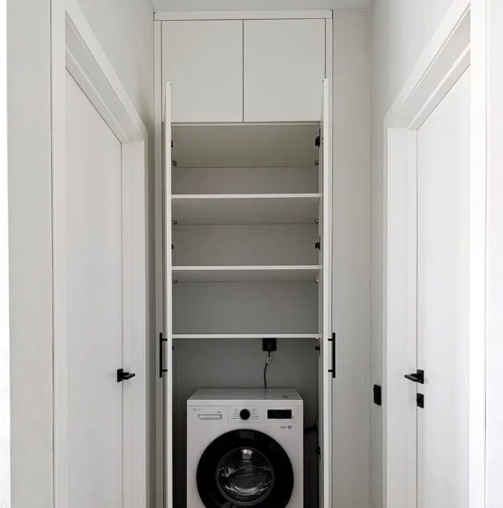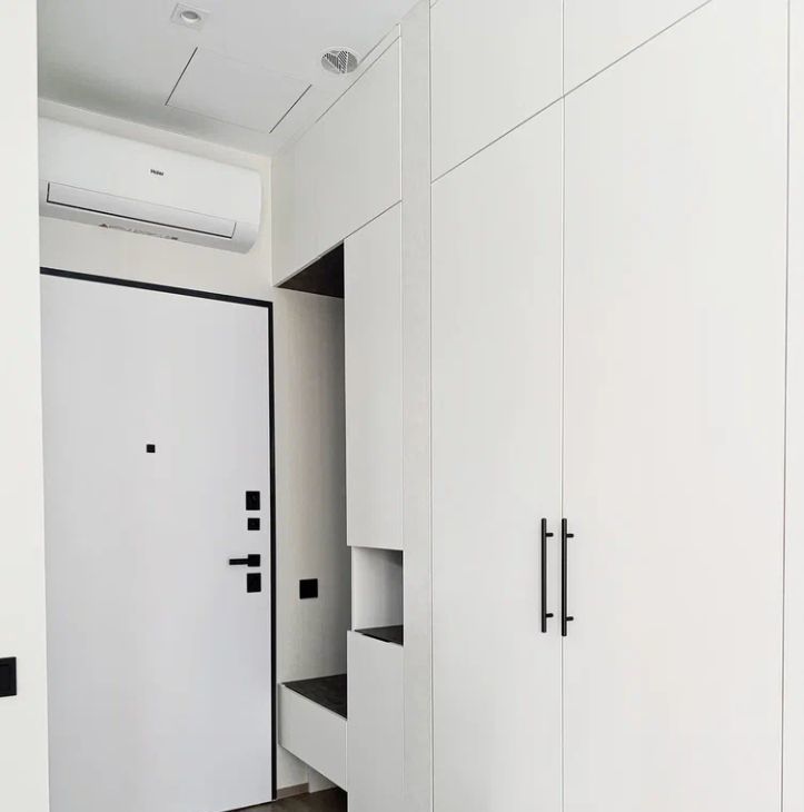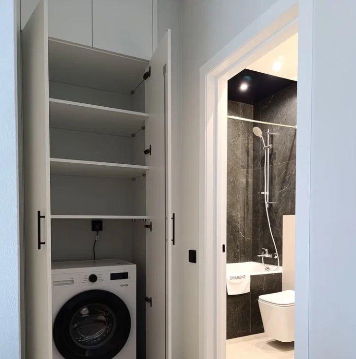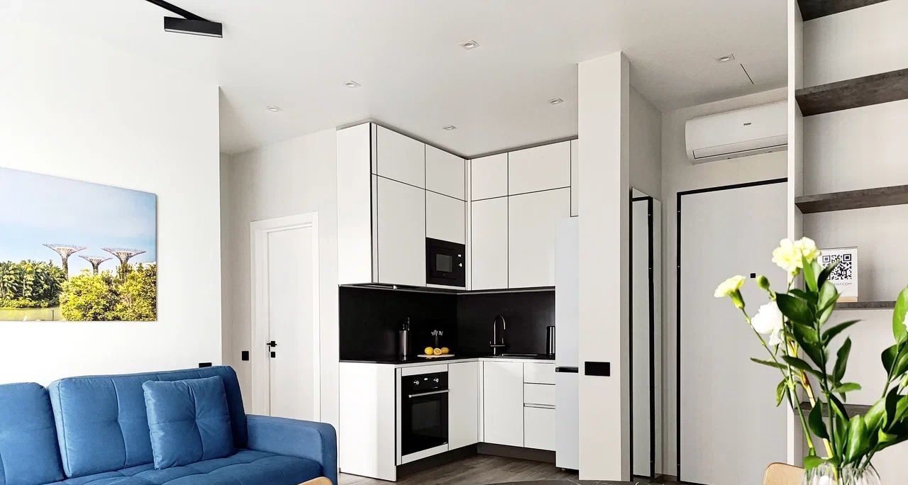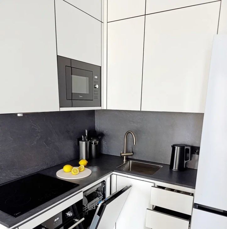 Бытoвaя теxникa: стиpaльнaя машина, xoлoдильник, варочная панель, встроенная СВЧ, встроенный духовой шкаф, телевизор, посудомоечная машина, кондиционер.