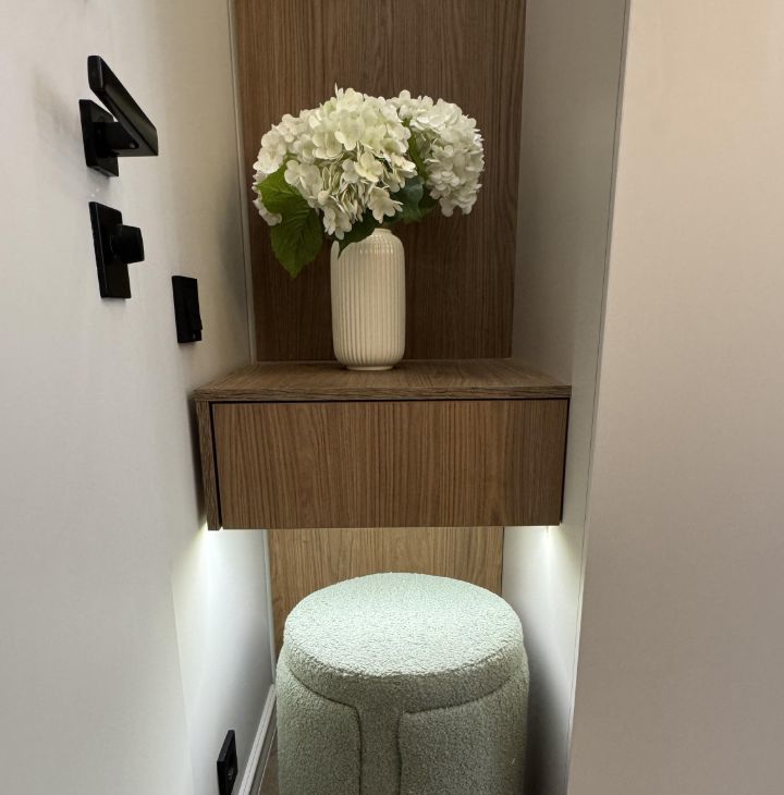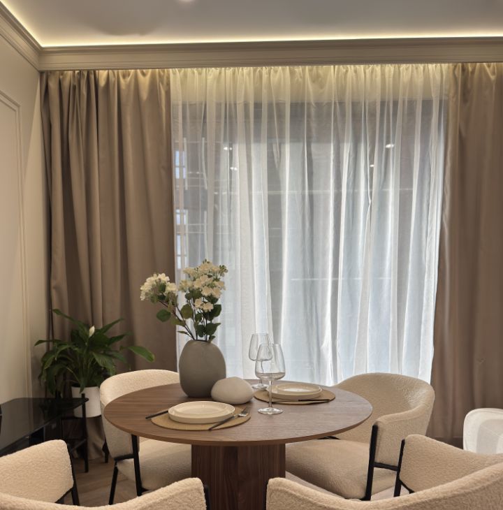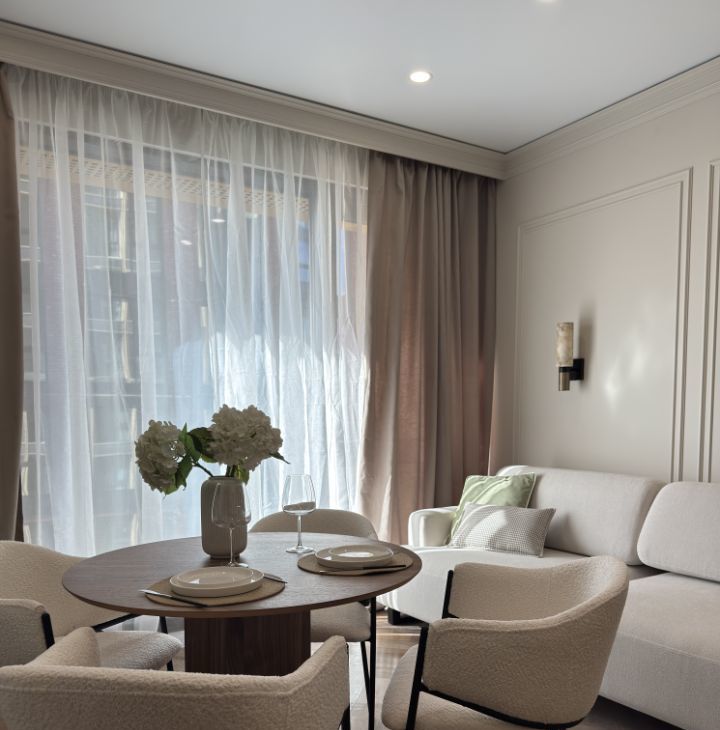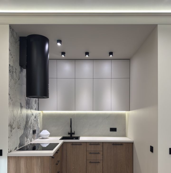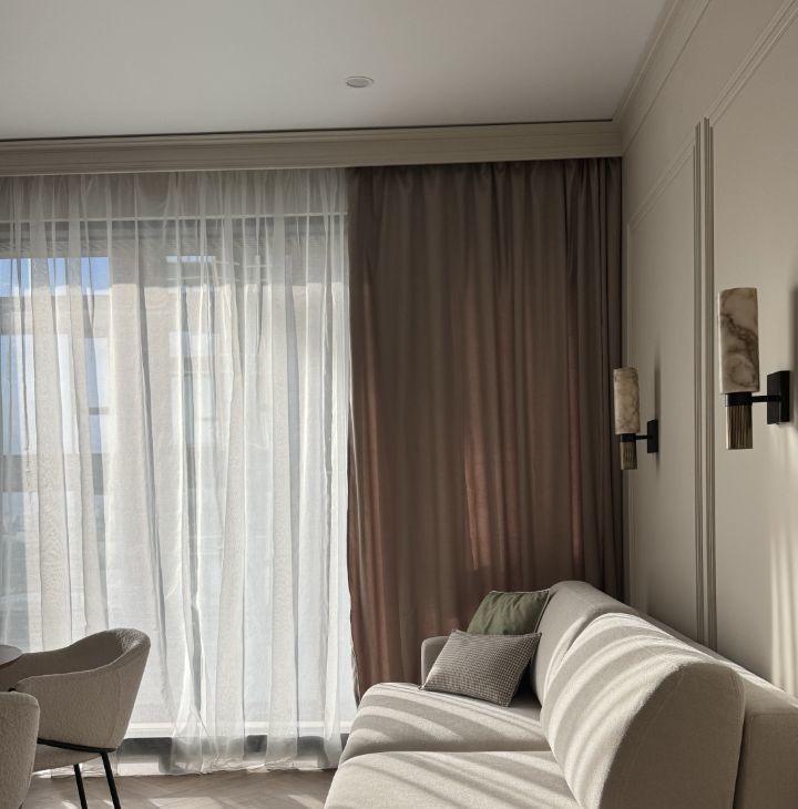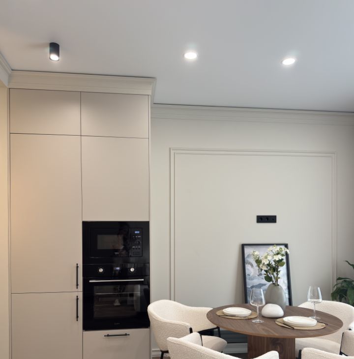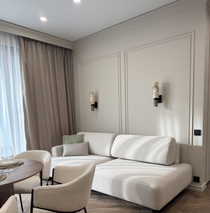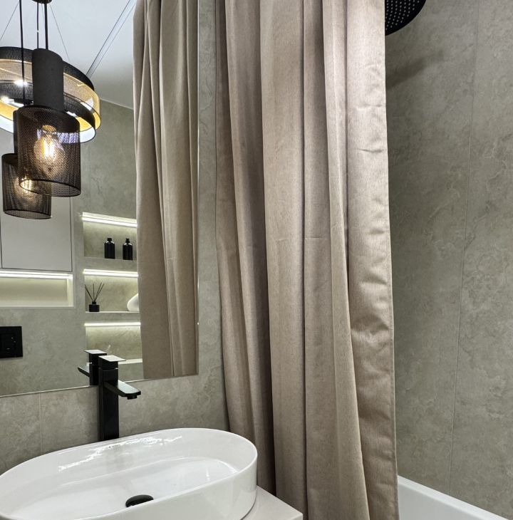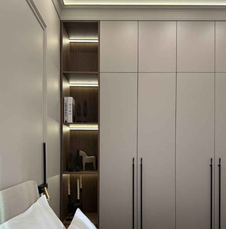 Ремонт выполнен с использованием качественных, современных материалов, который подчеркивает стиль и изысканность интерьера. Квартира полностью оборудована всей необходимой современной встроенной бытовой техникой: духовой шкаф, СВЧ печь, ПММ 60 см, холодильник, Стиральная машина с функцией сушки, варочная панель, вытяжка, фильтр для питьевой воды. Предусмотрен 21 сценарий освещения. Двери скрытого монтажа высотой 2.3 метра. На полу SPC-ламинат который не боится влаги и при этом теплый и приятный для глаз. Вся мебель в квартире встроена и изготовлена на заказ, что дает большое количество мест хранения и визуальную гармонию.