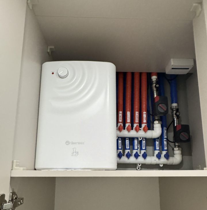 Для комфортного проживания в каждом помещении установлены бесшумные кондиционеры. Трассы для кондиционирования проведены заново под каждый кондиционер индивидуально и заложена правильно дренажная система для надежного отвода конденсата в дренаж. Система водоснабжения в квартире разведена через коллекторные узлы, для безопасности оборудована умной системой защиты от протечек с тремя датчиками протечки. В системе установлен накопительный Бойлер для комфортного проживания на период летнего отключения горячей воды.