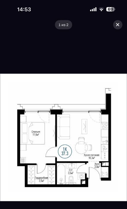 1-к кв. Москва Волгоградский просп., 32/5к3 (36.8 м²)