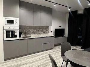 Есть вся необходимая мебель и техника - два кондиционера, 2 телевизора, духовка с микроволновкой 2в1, посудомойка, холодильник, два шкафа, вместительный кухонный гарнитур, диван раскладывается.