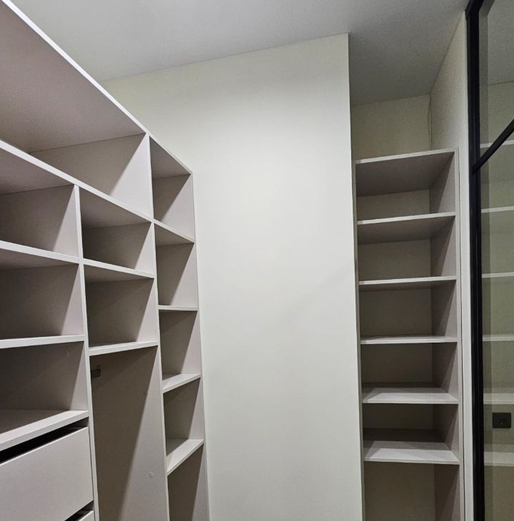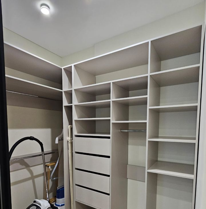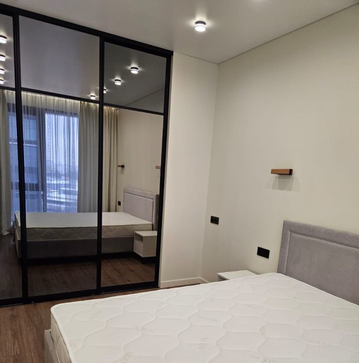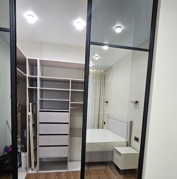 в спальне кровать с подъемным механизмом и местом хранения. В спальне выполнена звукоизоляция. Просторная гардеробная, пылесос, отпариватель, сушилка.