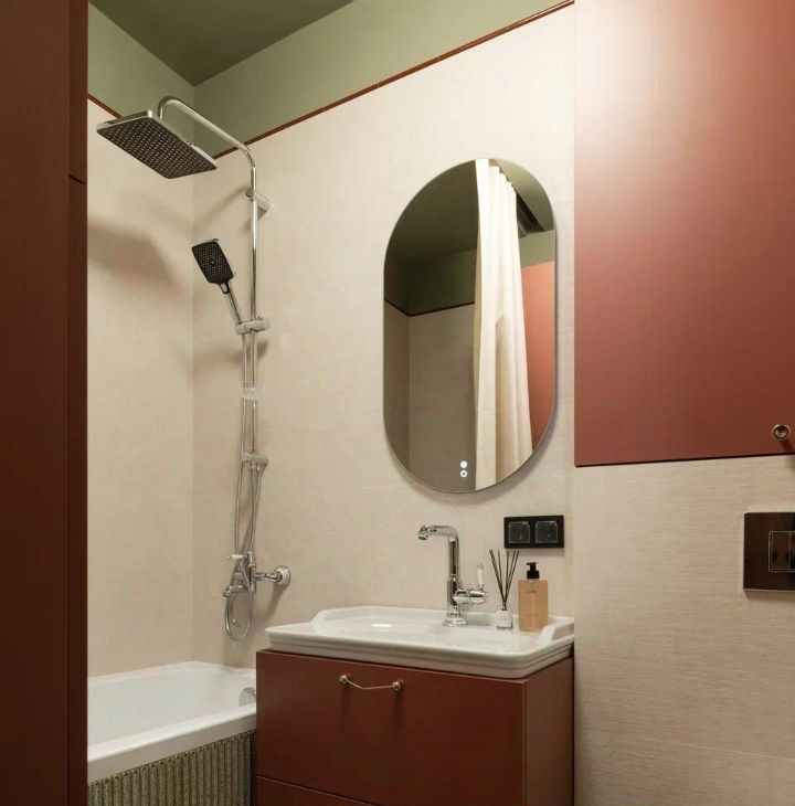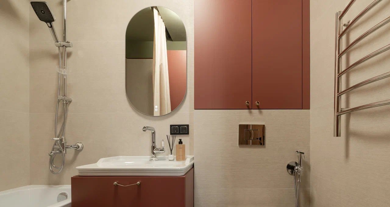 Ванная комната с полноценной ванной и всеми необходимыми аксессуарами и местом для хранения
