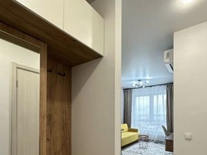 Предлагается 1-комнатная квартира общей площадью 26 м² в ЖК "Метрополия" недалеко от станции метро "Волгоградский проспект". Для комфортного проживания в наличии имеется вся необходимая мебель. Кухонный гарнитур оснащен духовой печью. Окна обращены на улицу.