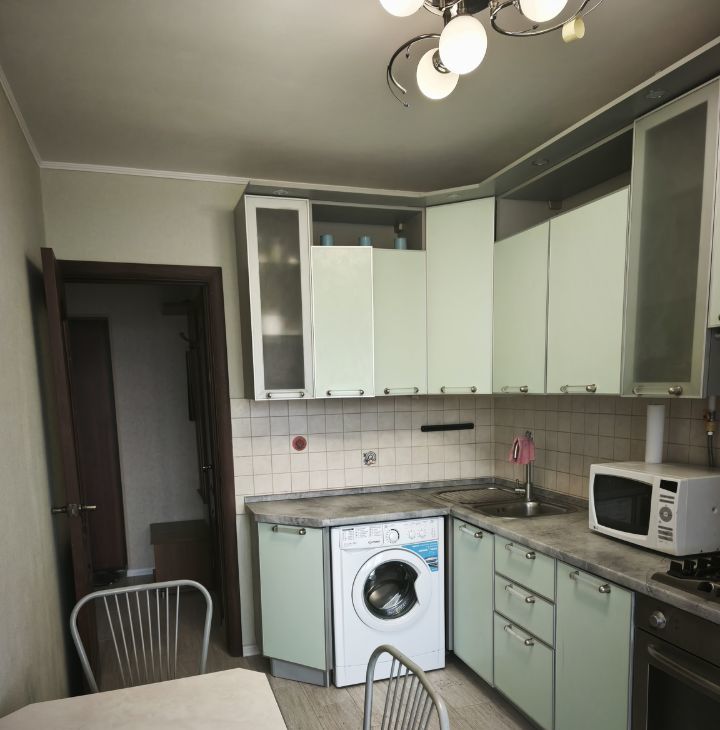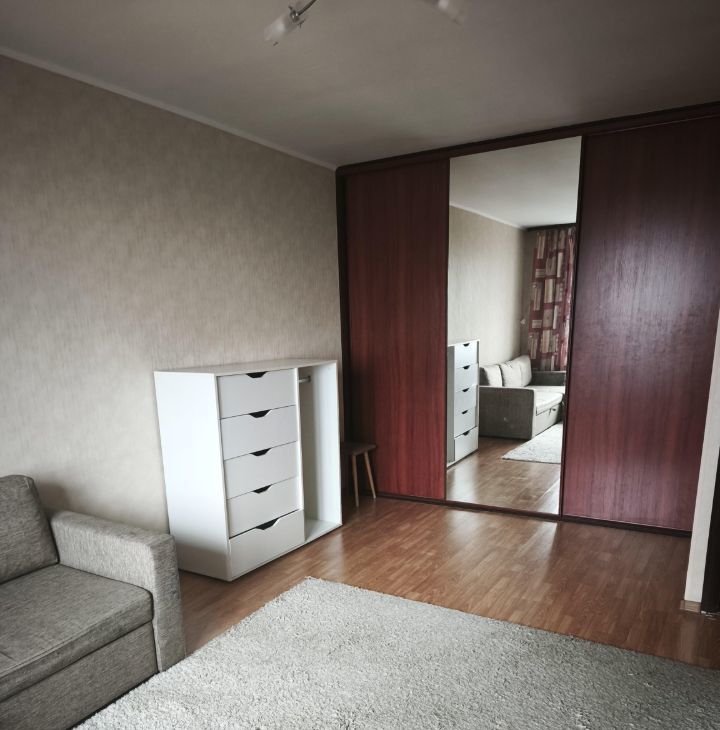 Квартира: комната 20м2, кухня 10 м2, балкон. Встроенная кухня, импортная техника, стиральная машина. В комнате огронмый шкаф-купе. В подъезде 2 новых лифта, сделан кап. ремонт дома. Окна во двор.