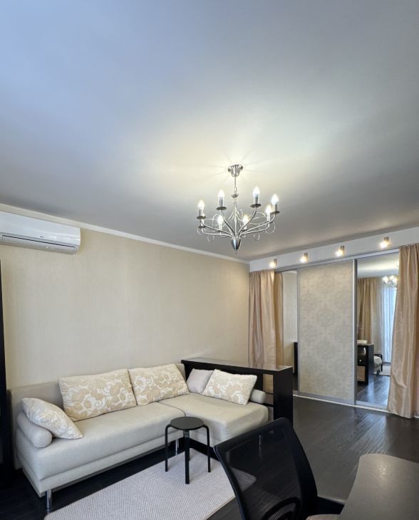 Сдам однокомнатную квартиру в отличном состоянии. ПРОСМОТРЫ С 13 МАРТА. В наличии вся необходимая мебель и бытовая техника (стиральная и посудомоечная машины, кондиционер, духовой шкаф, варочная поверхность, телевизор (по желанию можно установить второй телевизор 32 дюйма). Лоджия остеклена и утеплена - 6 кв.м. Тамбур на 3 квартиры, спокойные приветливые соседи.