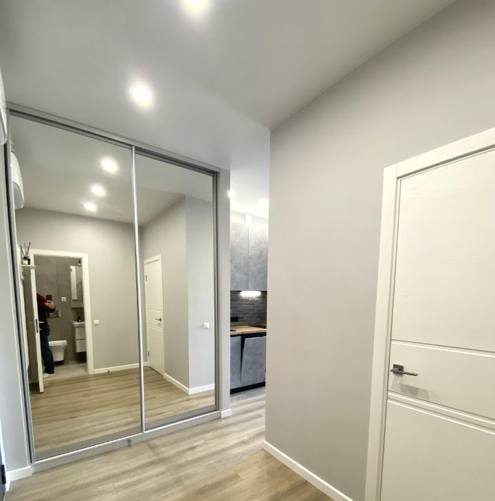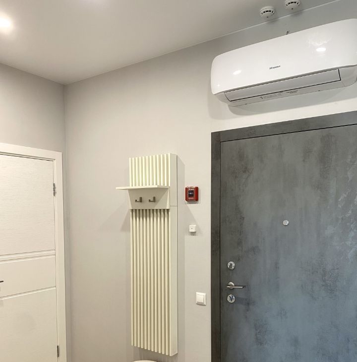 -просторная прихожая с кондиционером и большим шкафом-купе;