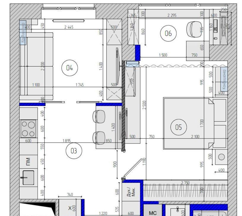 - Инверторные кондиционеры с Wi-Fi управлением в спальне и на кухне.