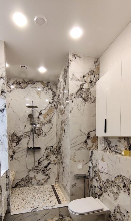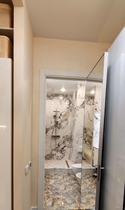 В квартире выполнен качественный ремонт по дизайн-проекту: