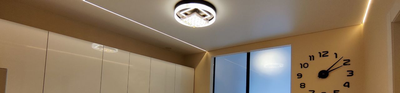 - Теневые натяжные потолки с подсветкой.