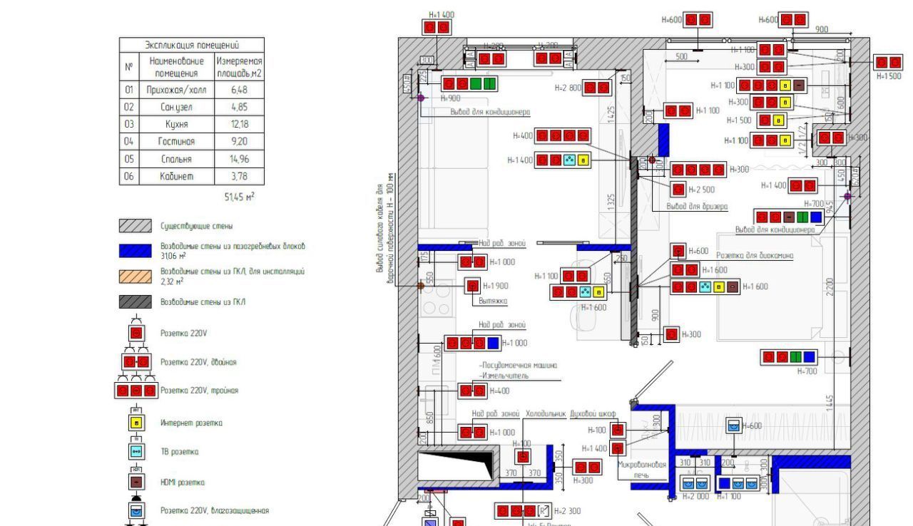 - Более 100 электроточек по всей квартире, усиленные электрокабели.