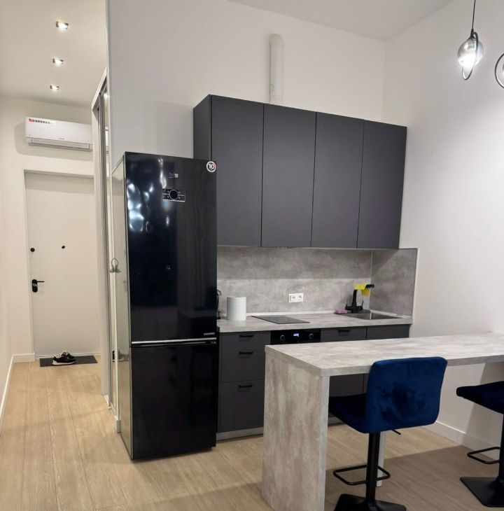 Имеется встроенная современная кухня со всей бытовой техникой (вытяжка, электроплита, духовой шкаф, посудомоечная машина, холодильник); раскладной современный диван, стол, стулья, кондиционер,ТВ, импортная сан. техника, датчики протечки воды, разводка под компьютерную сеть и Wi-Fi. В квартире подключен интернет. Хорошая отделка в апартаменте.