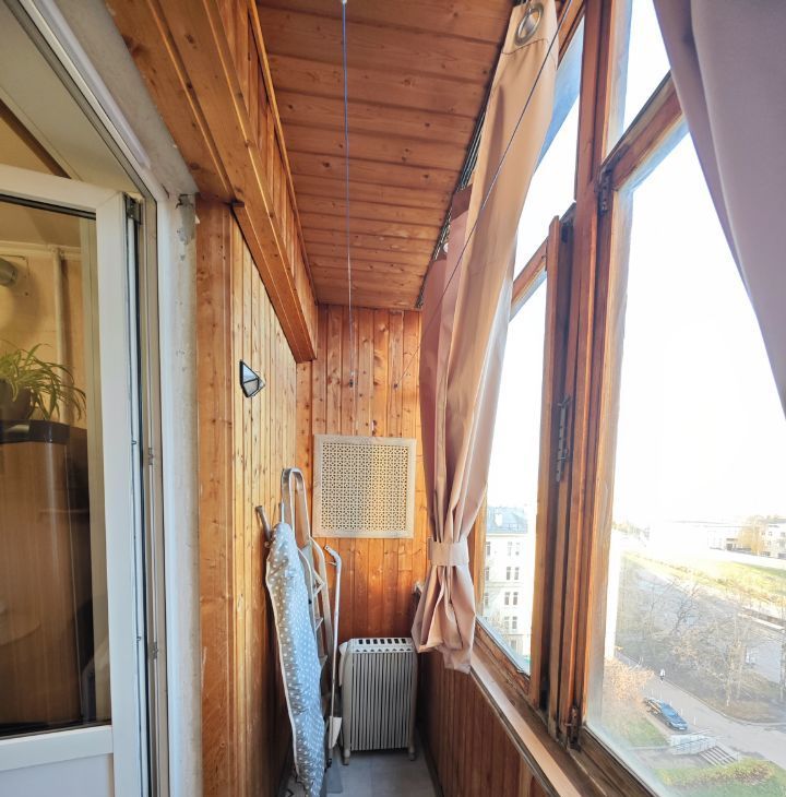 Застекленный балкон с выходом на кухне.