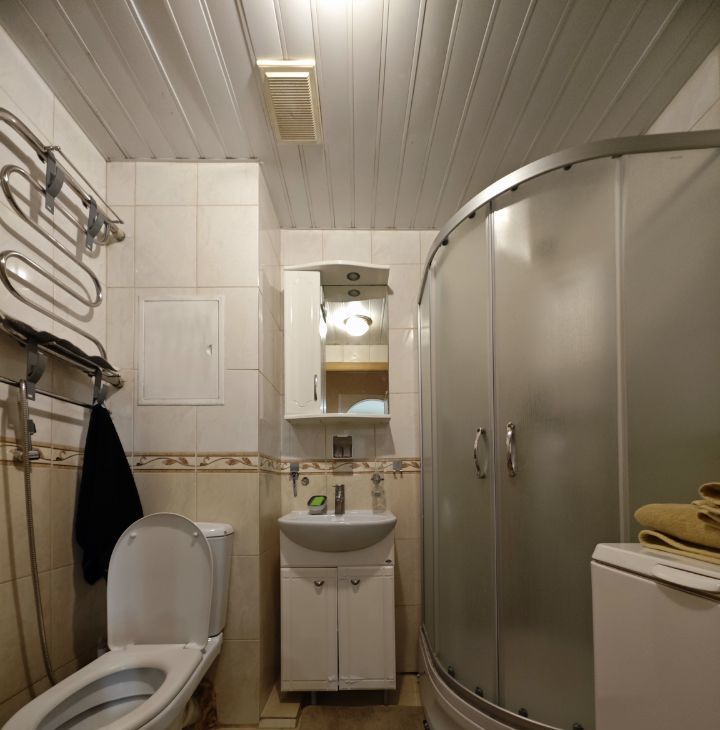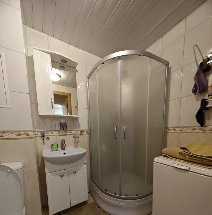 Санузел совмещенный, с душевой кабиной.