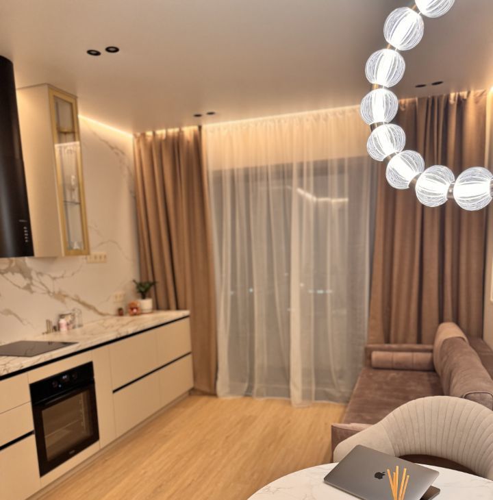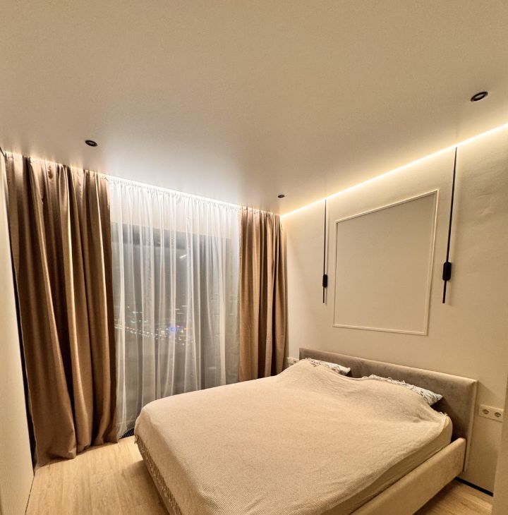 в квартире установлена шикарная кровать премиального уровня с ортопедическим матрасом, обеспечивающим полноценное восстановление и качественный сон. Кровать оснащена подъёмным механизмом, а также функцией массажа, создавая ощущение уровня luxury-отеля прямо у вас дома.