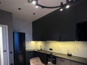 В кухонной зоне установлена качественная бытовая техника. Укомплектована индукционной плитой, холодильник, духовой шкаф, посудомоечная машина, микроволновая печь, вместительные шкафчики.
