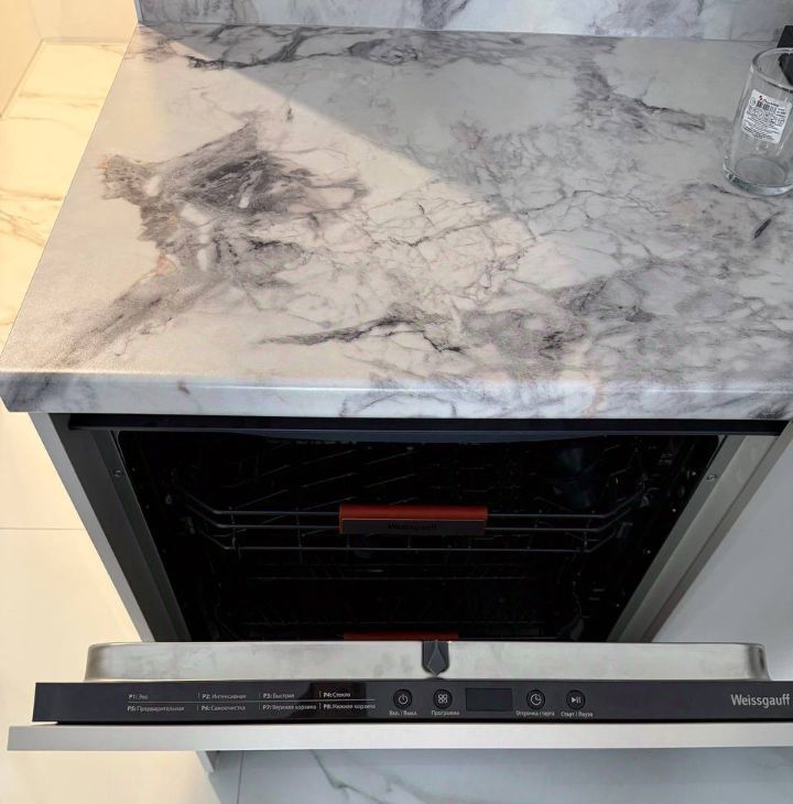 В кухонной зоне установлена качественная бытовая техника. Укомплектована индукционной плитой, холодильник, духовой шкаф, посудомоечная машина, вытяжка микроволновая печь, вместительные шкафчики, фильтр для воды, полный комплект посуды.