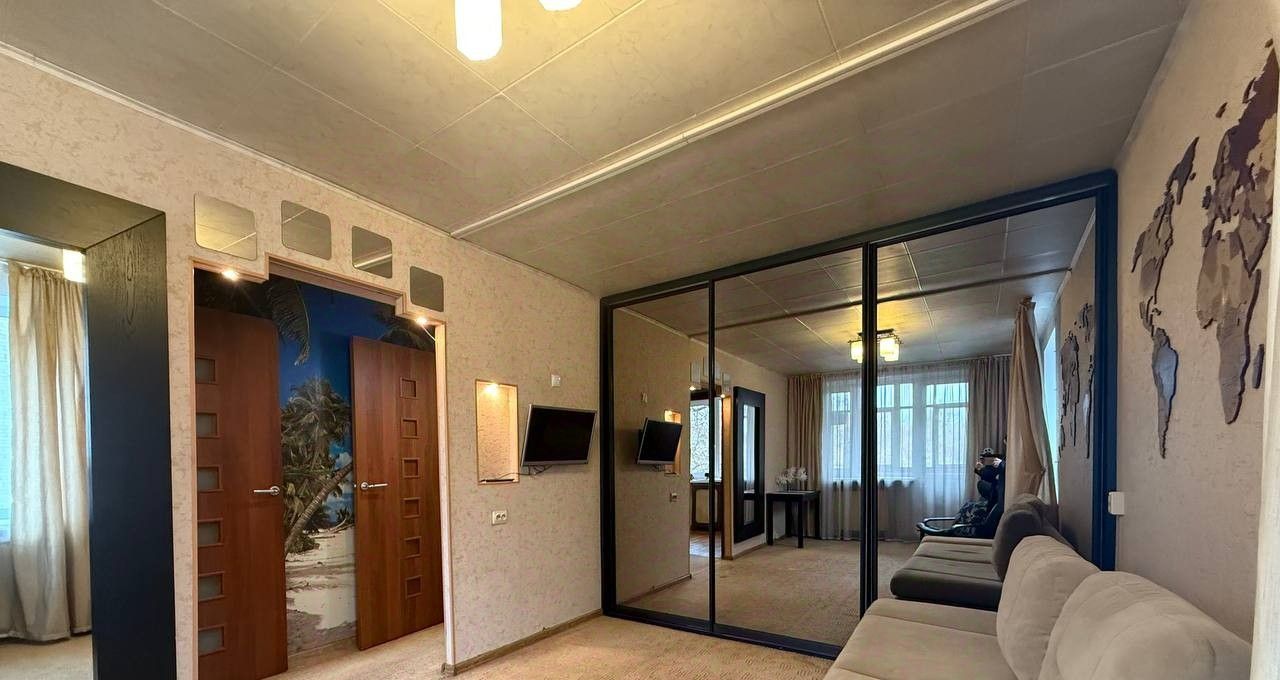 Комната: раскладной диван, телевизор, роутер (WiFi), очень вместительный и просторный шкаф-купе, стол, большое, во весь рост зеркало, комод, кресло и просторный балкон с местами для хранения.