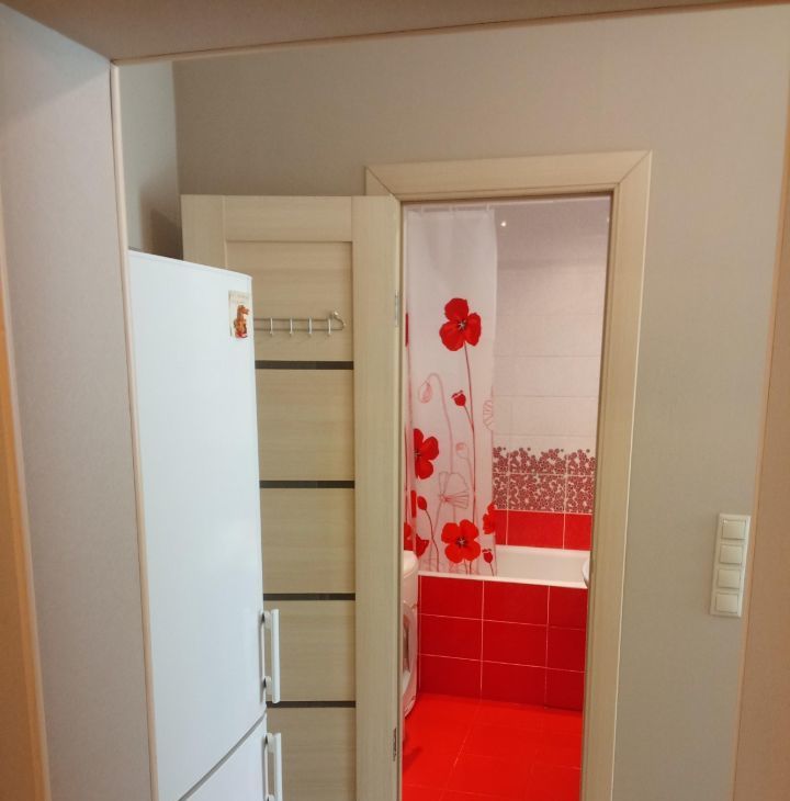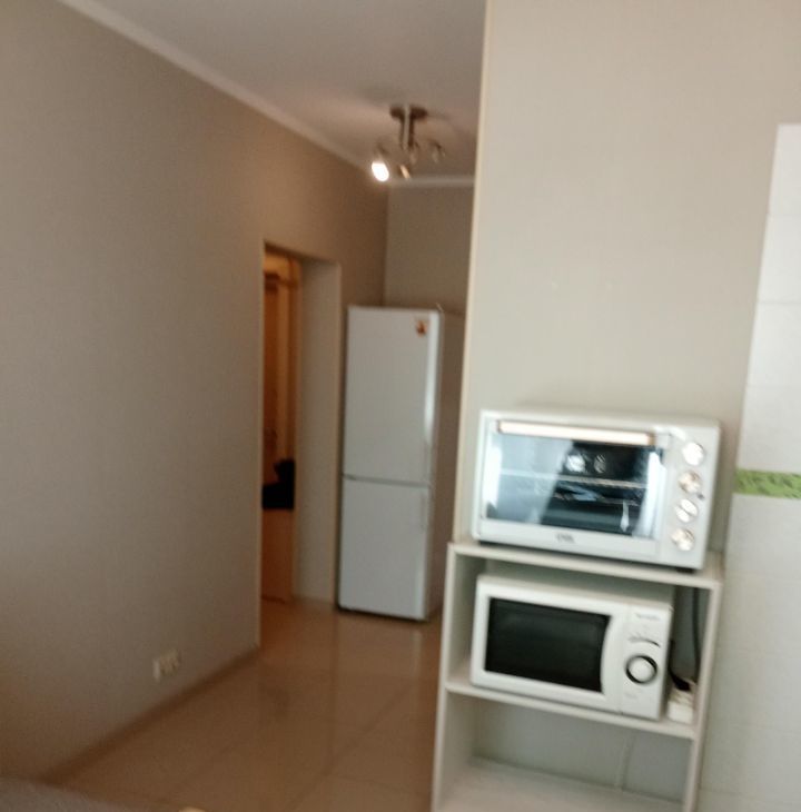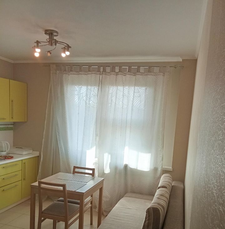 В квартире есть все необходимое для комфортного проживания. Современная кухня полностью укомплектована мебелью и техникой: установлен холодильник и кондиционер. В комнате также есть необходимая мебель. Ванная комната оборудована ванной, есть стиральная машина. Окна выходят во двор, что обеспечивает тишину и уют.