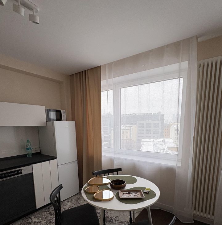В квартире есть всё необходимое для комфортного проживания: современная мебель на кухне и в комнате, а также вся необходимая техника — холодильник, посудомоечная машина, телевизор, стиральная машина. Санузел совмещённый, с душевой кабиной. Интернет подключён, поэтому можно оставаться на связи в любое время.