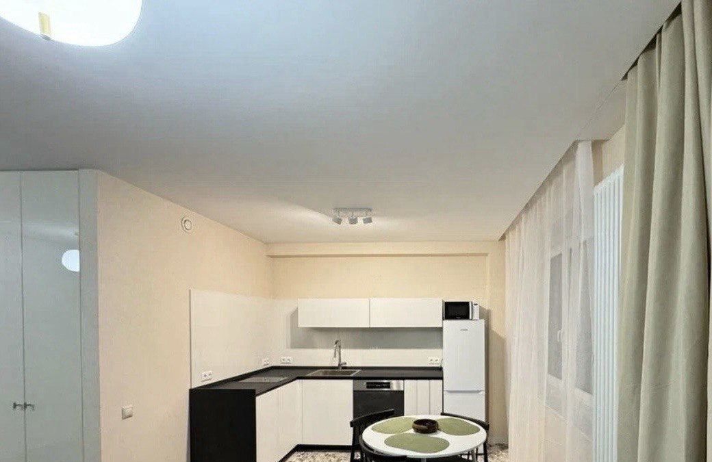 В квартире есть все необходимое для комфортной жизни: на кухне и в комнате размещена современная мебель, а также вся необходимая техника — холодильник, посудомоечная и стиральная машины, телевизор. Совмещенный санузел оборудован душевой кабиной, что добавляет удобства. Подключен интернет, поэтому всегда можно оставаться на связи.