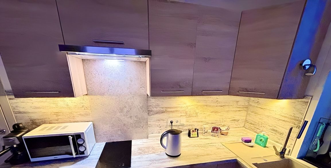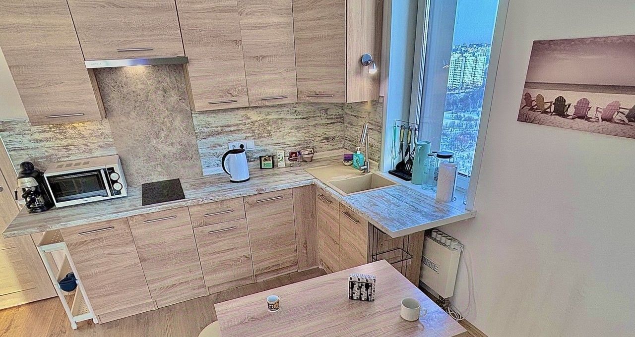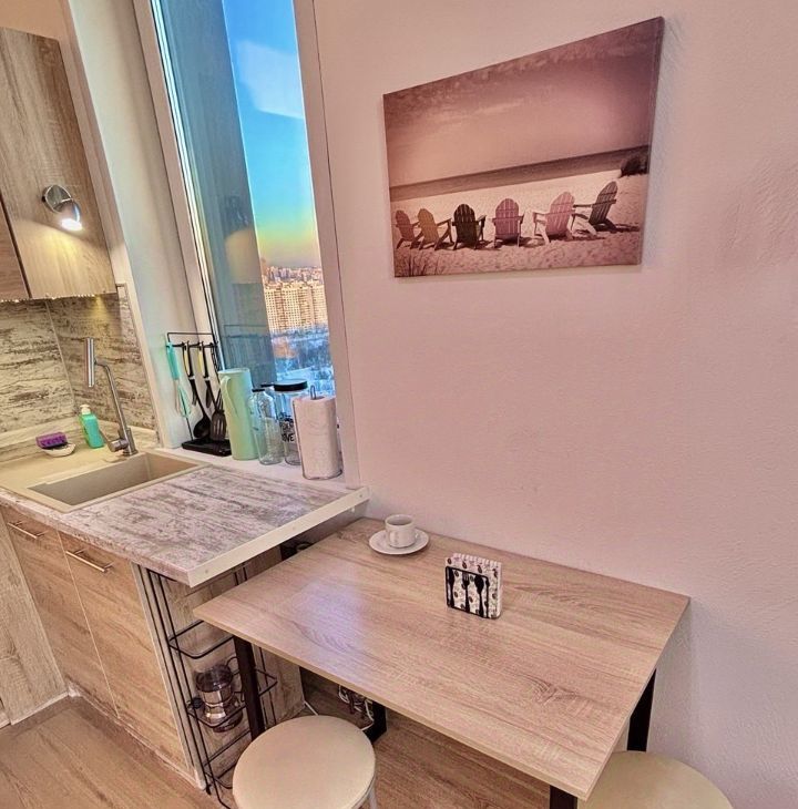 Кондиционер, полноценный холодильник в бесшумной зоне, качественная стиральная машина, варочная панель с безопасным автоотключением. Ортопедический матрас, много систем хранения, стильный кухонный гарнитур.
