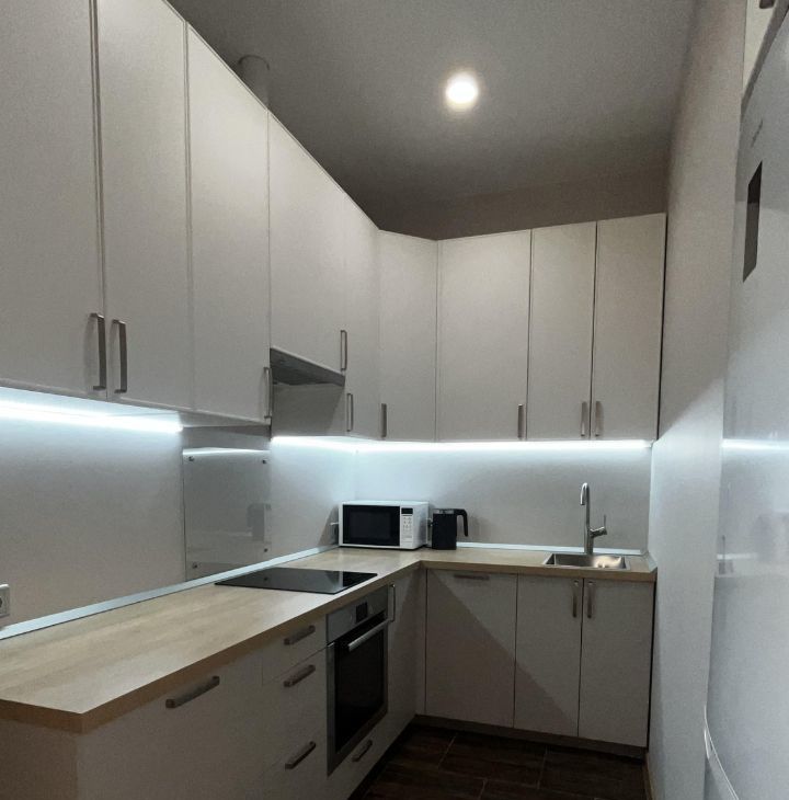 Сдается уютная квартира в ЖК "НЕВСКИЙ". По планировке: гостиная -кухня, изолированная зона спальни, совмещенный санузел. Квартира полностью оборудована мебелью и всей необходимой бытовой техникой. Есть посудомоечная и стиральная машины, СВЧ, вытяжка, холодильник, варочная панель и духовой шкаф.