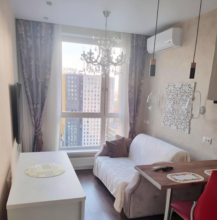 Студия укомплектована всей необходимой мебелью и техникой. В доме круглосуточная охрана.
