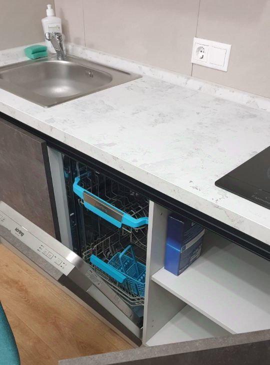 Квартира с дизайнерским ремонтом, в ней продумана каждая деталь для вашего комфорта. В комнате и на кухне есть вся необходимая мебель. Кухня оснащена современной техникой: холодильником, посудомоечной и стиральной машинами. В гостиной установлен кондиционер и телевизор. В ванной комнате вы найдёте удобную душевую кабину. Окна квартиры выходят во двор, поэтому в квартире тихо и уютно.