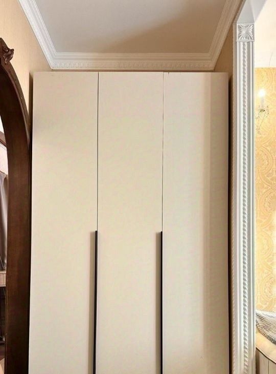 Встроенные шкафы вдоль стены очень вместительные, что позволит разместить большое количество одежды и других личных вещей.