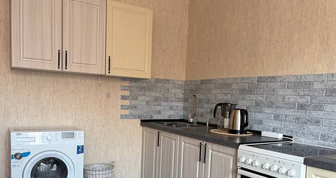 В квартире сделан косметический ремонт, что создает приятную атмосферу. В наличии вся необходимая мебель: удобная кровать и вместительный шкаф в комнате, а также обеденный стол на кухне. Из техники есть холодильник и стиральная машина. Санузел совмещенный, с ванной.