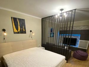 Полностью укомплектована необходимой мебелью и бытовой техникой. Двуспальная кровать. Диван. Вместительный шкаф. Кондиционер. Телевизор. Стиральная машина. Застеклённая лоджия. Система пожаротушения. Машиноместо во дворе под шлагбаумом.