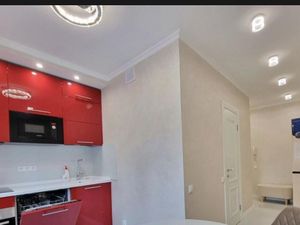 Квартира с качественным евроремонтом, полностью меблирована и готова к комфортному проживанию. В комнате и на кухне есть вся необходимая мебель. На кухне установлены современные бытовые приборы: холодильник, посудомоечная машина и кондиционер. В комнате также есть телевизор. Ванная комната оборудована ванной и стиральной машиной, санузел совмещённый. Изюминкой квартиры является лоджия с видом на городскую улицу.