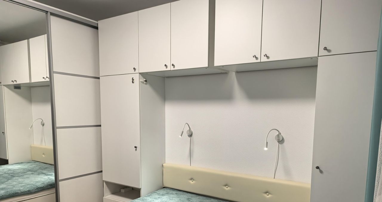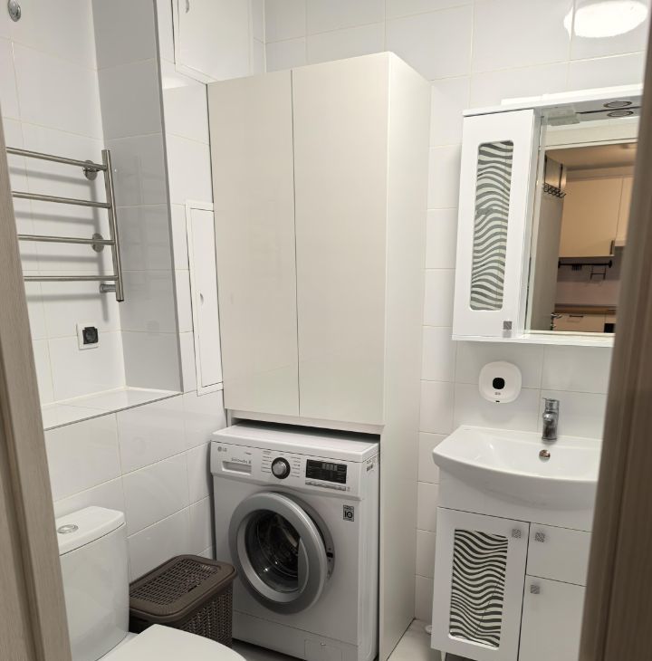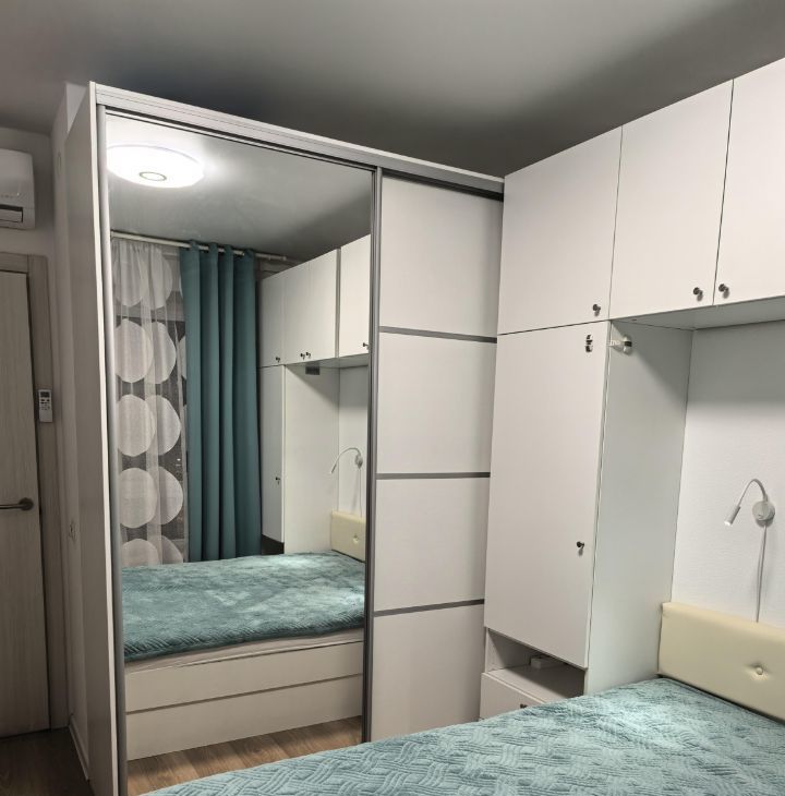 В квартире выполнен современный евроремонт. Квартира оборудована всей необходимой бытовой техникой. Полностью мебелирована, есть много мест для хранения вещей. Установлен кондиционер, микроволновая печь, духовой шкаф, холодильник, электрическая варочная панель, стиральная машина, телевизор.