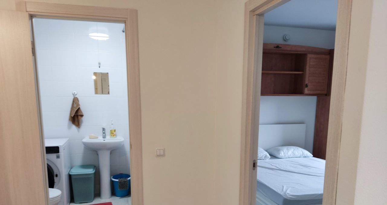 Санузел - совмещенный, есть новая большая стиральная машина.