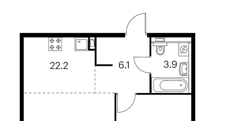 Евродвушка (объединенная гостиная-кухня, отдельная спальня).