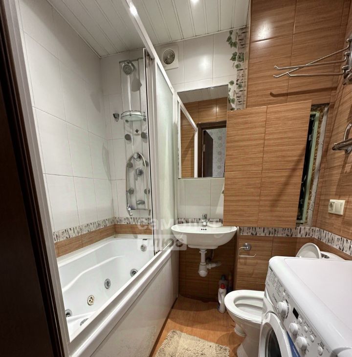 Квартира готова к проживанию. Имеется 2 дивана, кондиционер, большой вместительный шкаф, кухонный гарнитур с микроволновой печью, холодильник, стиральная машинка.