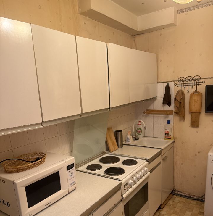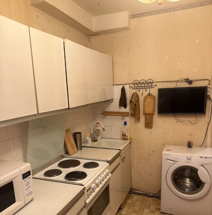 В квартире выполнен косметический ремонт. Вас ждут удобная мебель на кухне и в комнате, а также необходимая техника: холодильник и стиральная машина. Планировка включает совмещенный санузел с ванной и балкон, где можно наслаждаться свежим воздухом.