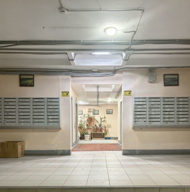 Расположена на пятом этаже двенадцатиэтажного дома. В квартире сделан косметический ремонт. Окна выходят на пространство между улицей и парком.