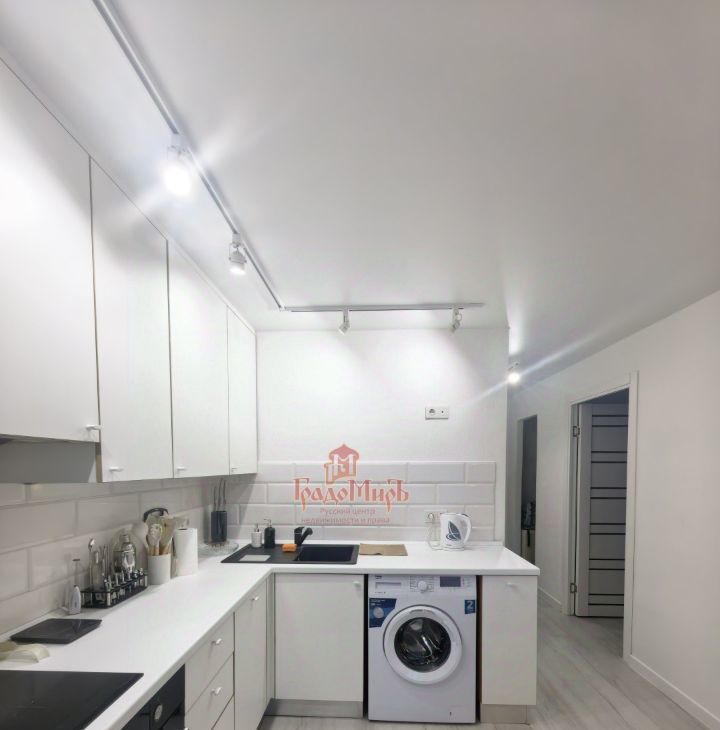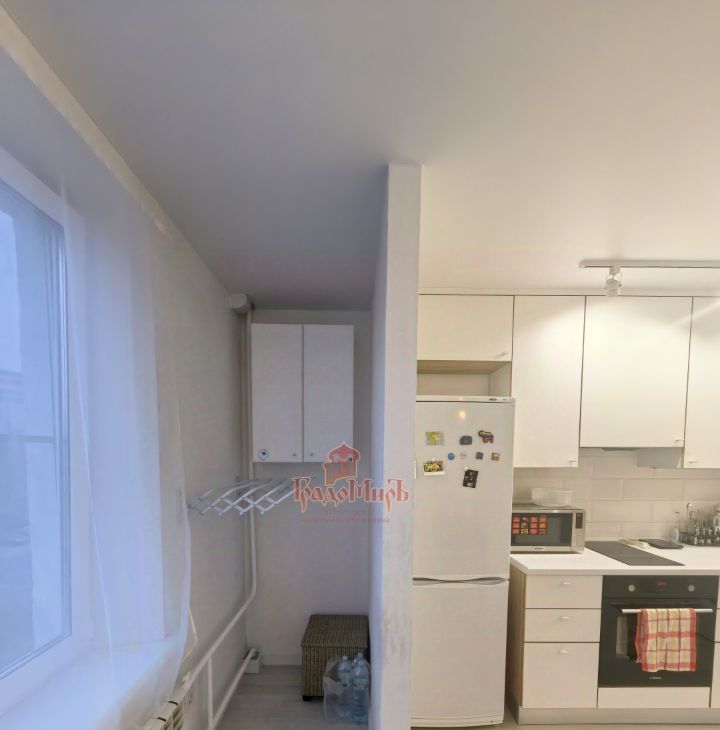 На кухне выделено пространство, которое можно использовать для хранения или сушки белья.