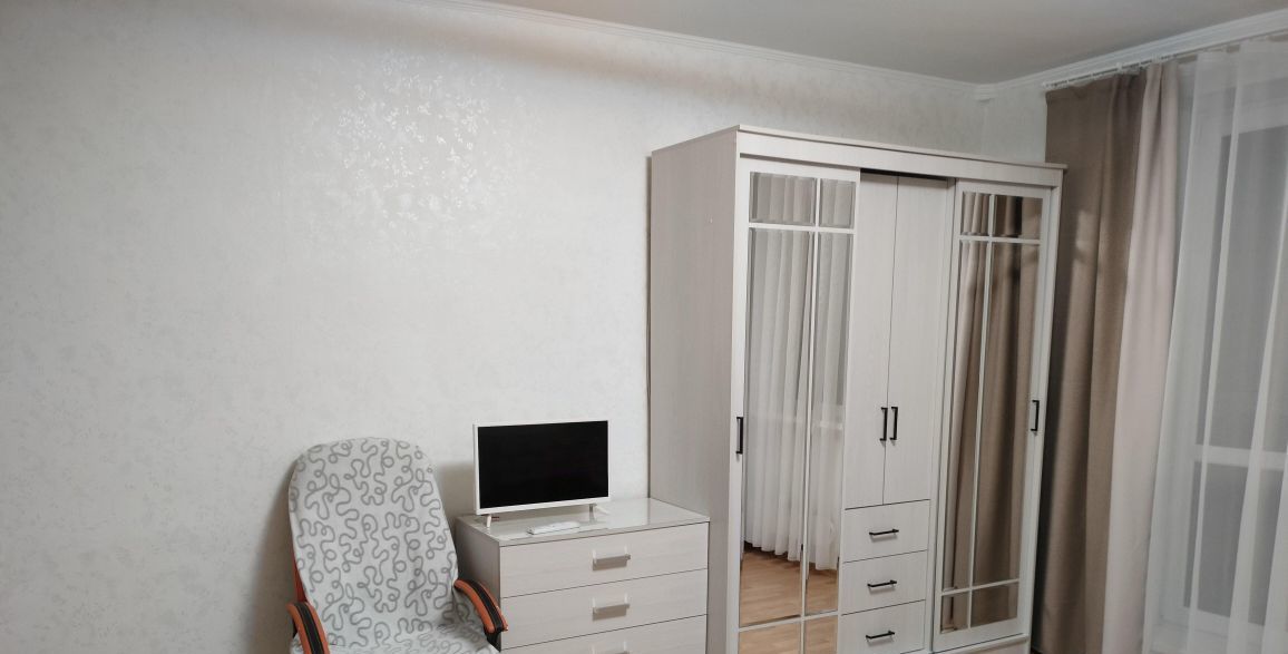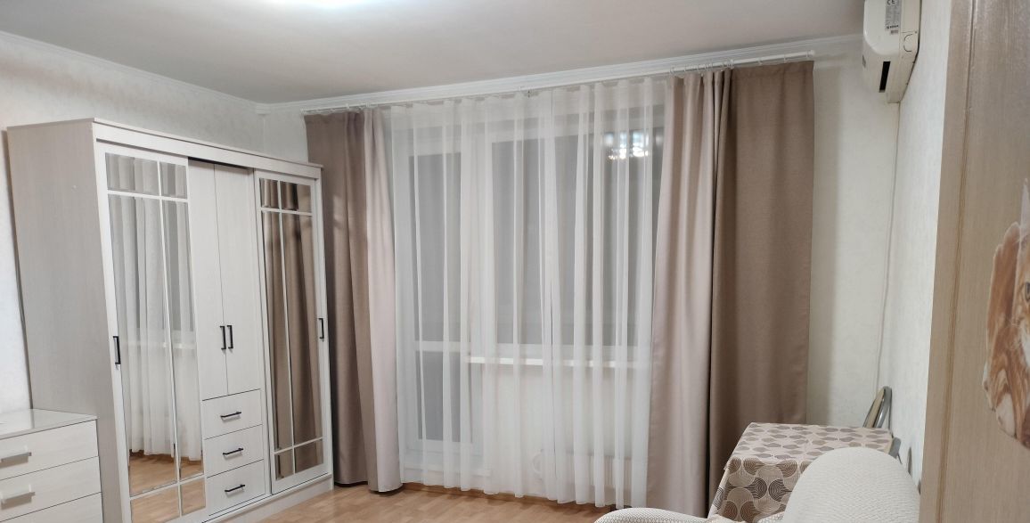 В квартире выполнен косметический ремонт, поэтому она выглядит очень аккуратно и приятно. На кухне и в комнате есть вся необходимая мебель для комфортного проживания. В ванной комнате установлена ванна, где можно расслабиться после рабочего дня. Из техники вас ждут кондиционер, холодильник, телевизор и стиральная машина — всё, что нужно для удобства и комфорта.
