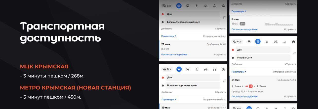 450м (5 минут пешком) до метро Крымская (новая станция).