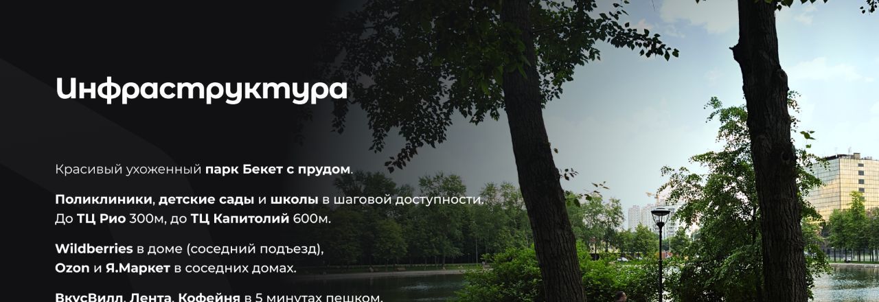 До ТЦ Рио 300м, до ТЦ Капитолий 600м.