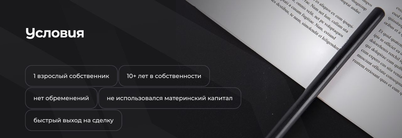 1 взрослый собственник, 10+ лет в собственности, нет обременений, не использовался материнский капитал. Быстрый выход на сделку.