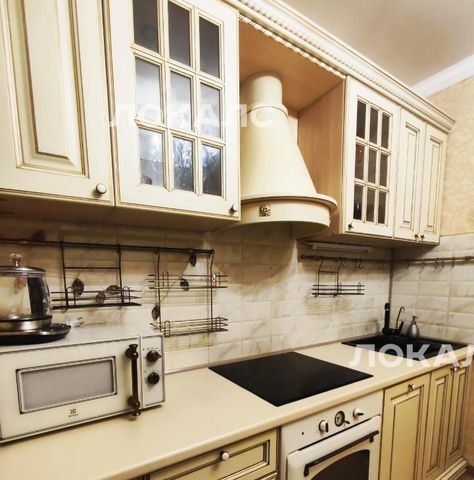 Стильная кухня оборудована встраиваемой импортной техникой, большое количество выдвижных ящиков и мест хранений, предоставлена мелкая бытовая техника для комфортного проживания, имеется выход на лоджию с дополнительной зоной хранения.
