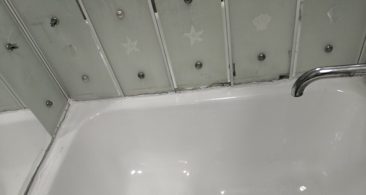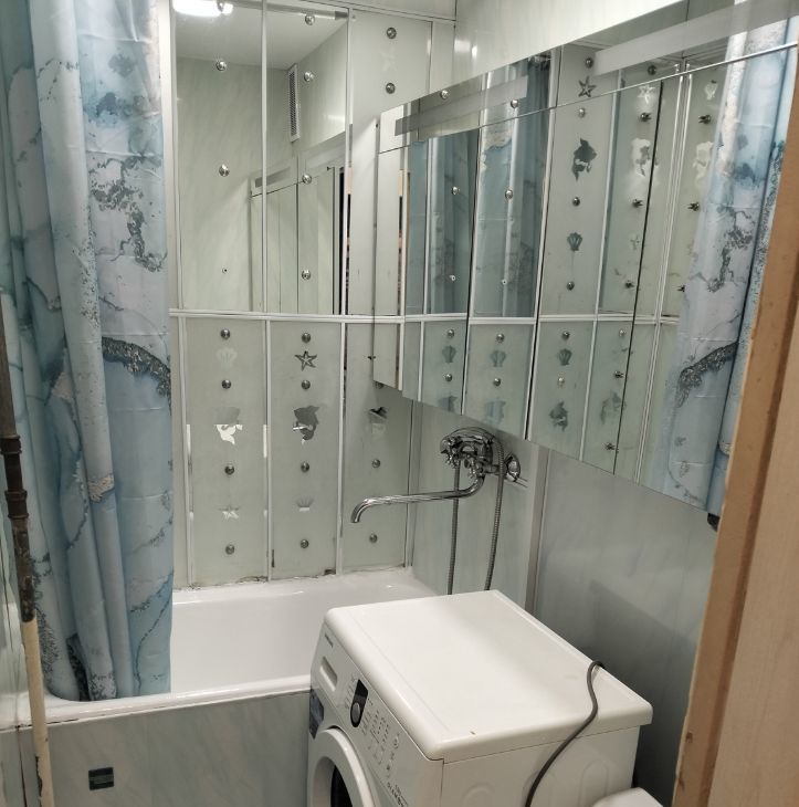 Санузел совмещенный, небольшая ванная.