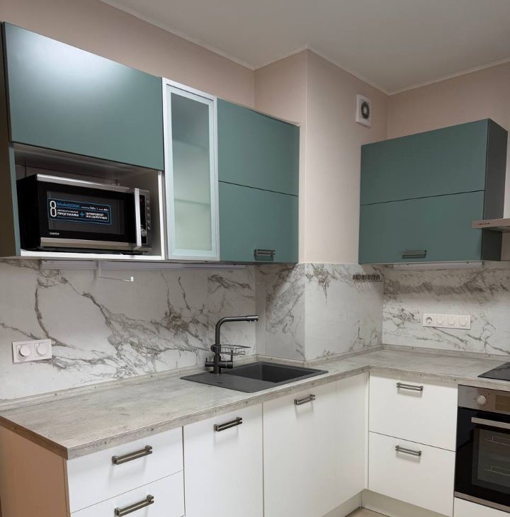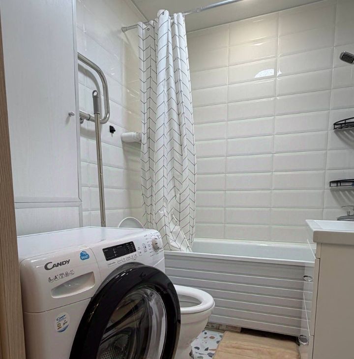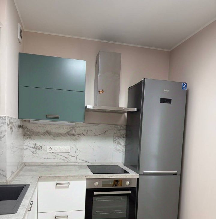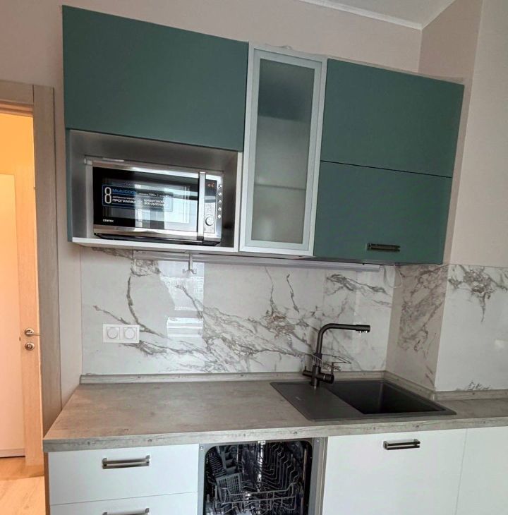 Квартира укомплектована всей бытовой техникой (плита, духовка, посудомойка, no frost-xолодильник, стиральная машина, вытяжка, микроволновка) и мебелью, необходимой для жилья.